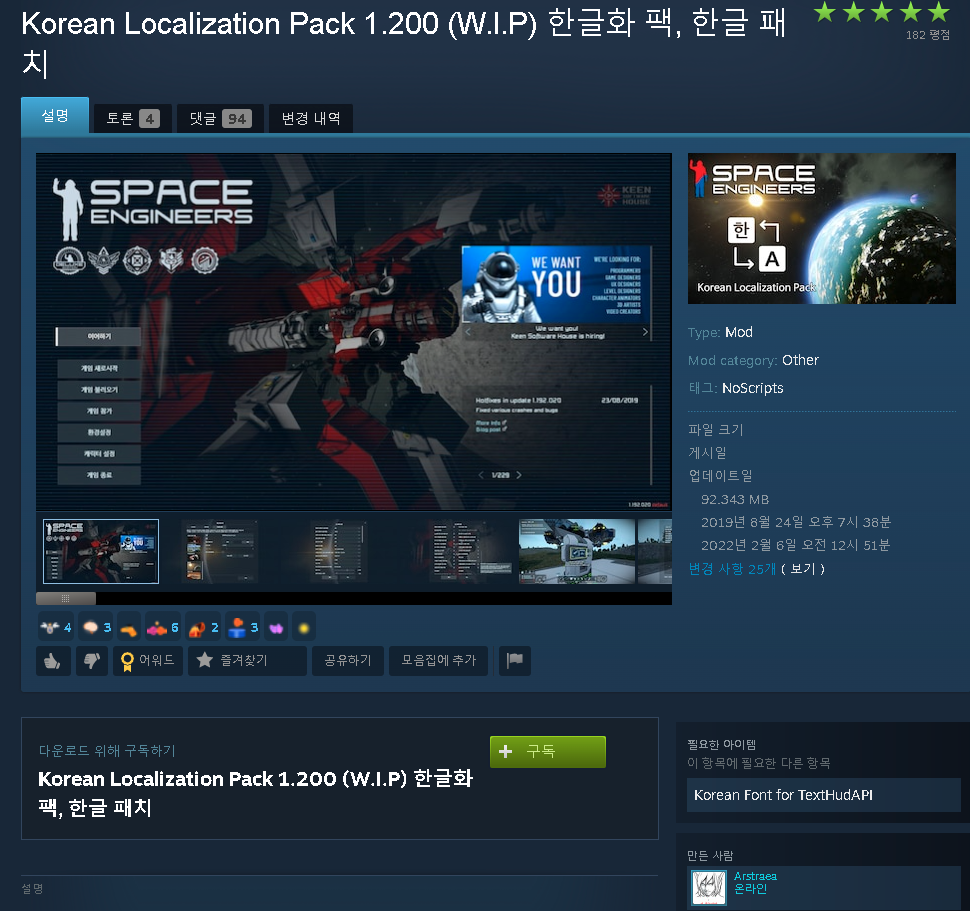 스페이스 엔지니어 한글화 팩 구독주소