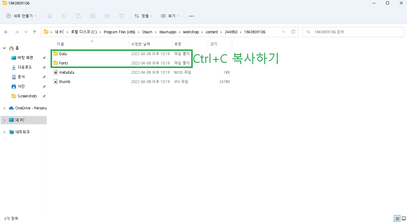 4. Data 와 Fonts 폴더를 복사해주세요.