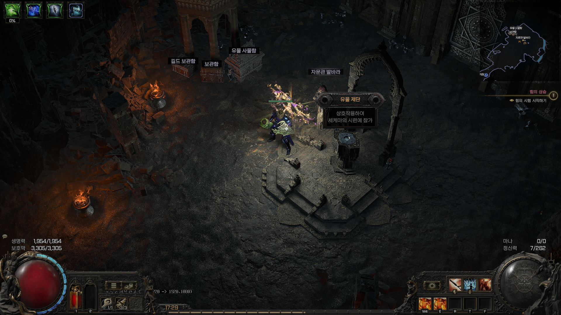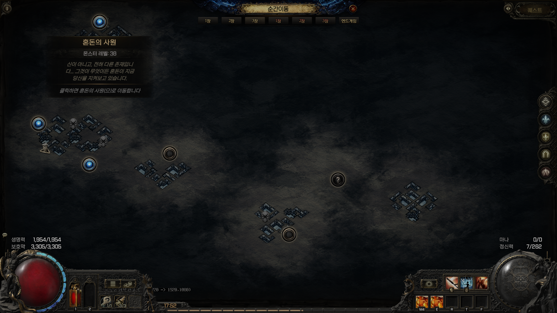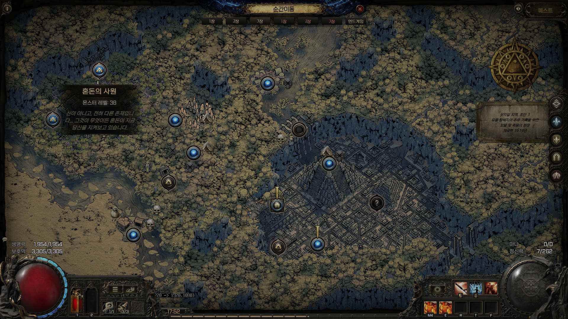 | 1. 엑트 3에서 위에 사진에 나온 아이콘을 클릭합니다. | 2. 위에 나온 사진에 나온 아이콘을 클릭합니다. | 바로가기 : 지도를 키면 오른쪽에 중앙에 보면 혼돈의 사원을 바로갈수있는 버튼이 있습니다. |