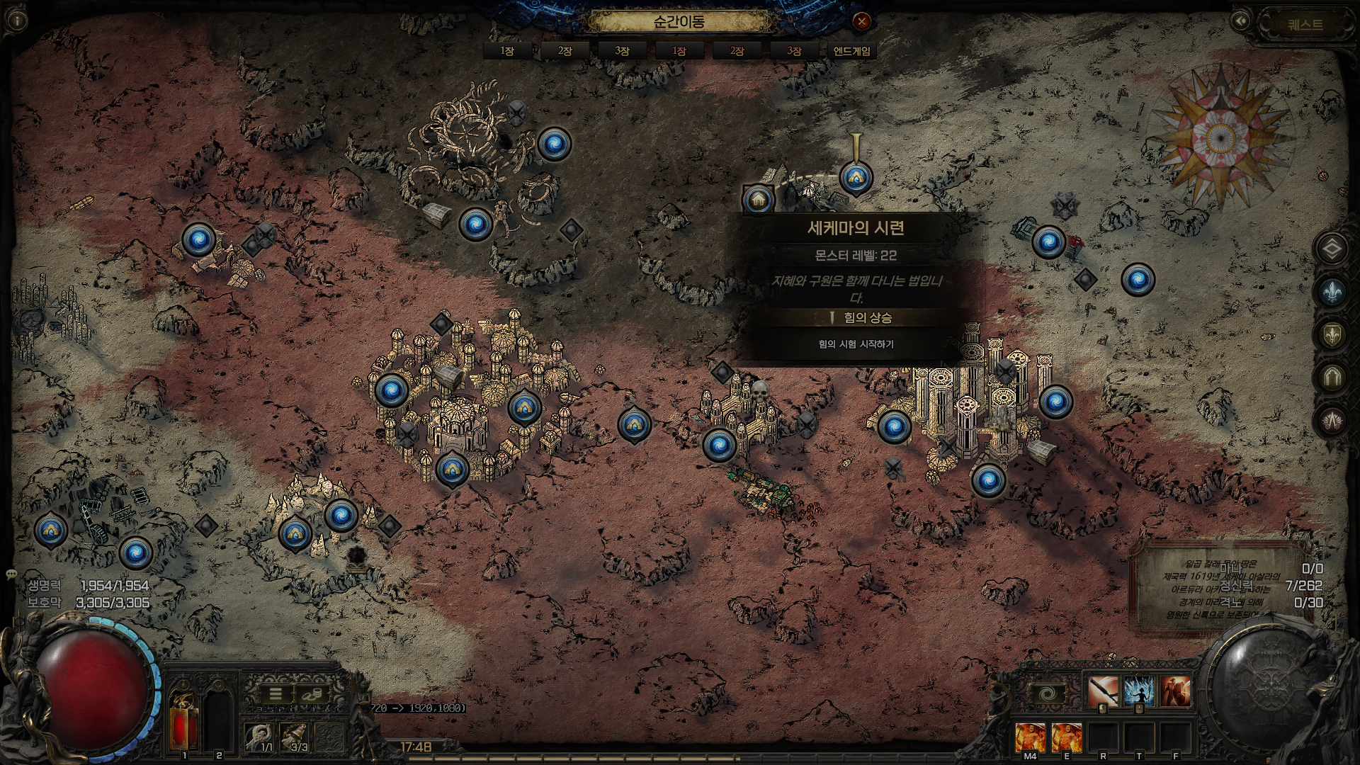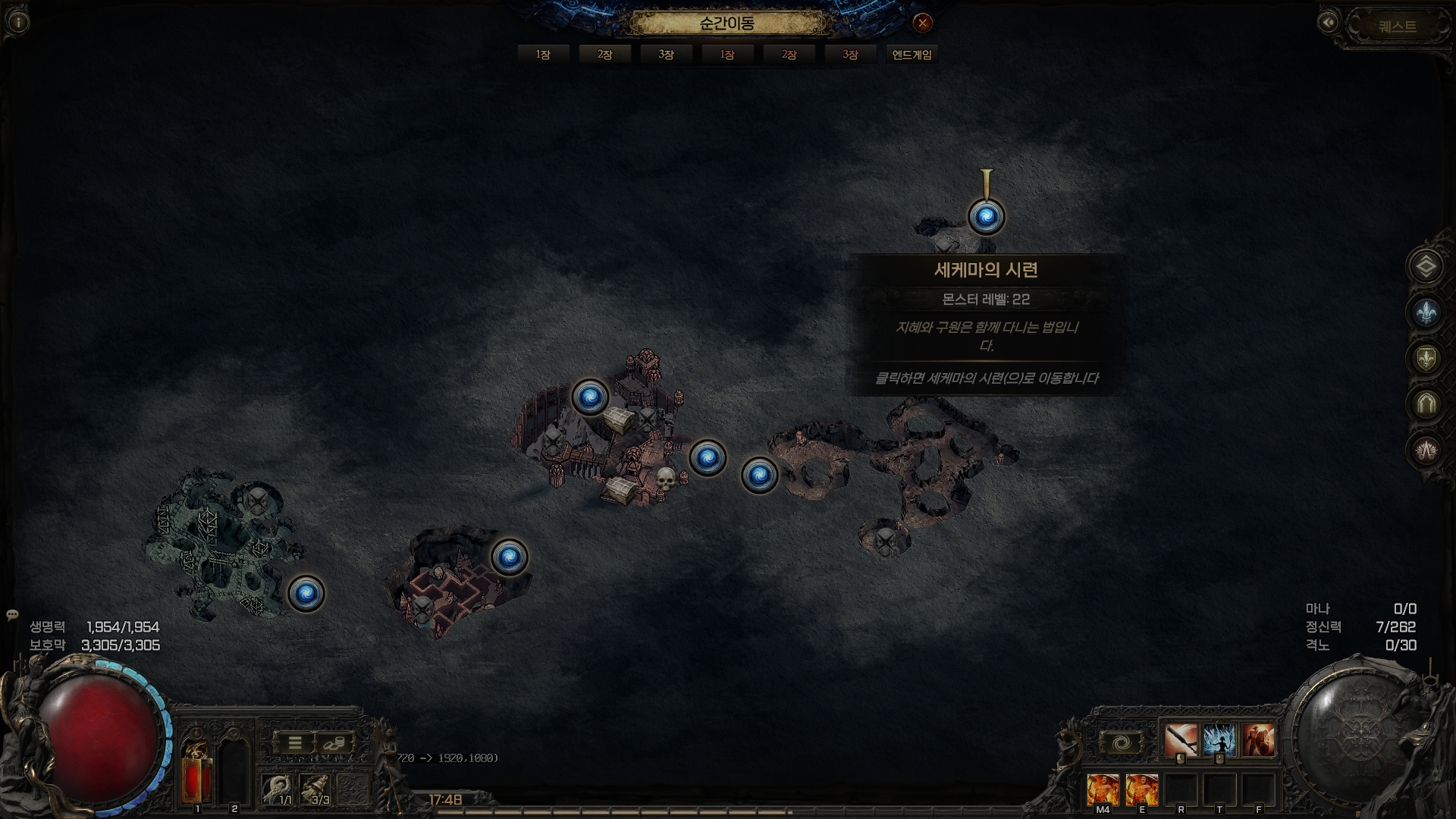 | 1. 엑트2에서 위에 사진에 나온 아이콘을 클릭합니다. (엑트 초반에는 아이콘 눌러도 안넘어가지는데 선으로 연결된 왼쪽에 작은 아이콘을 눌러야합니다) |