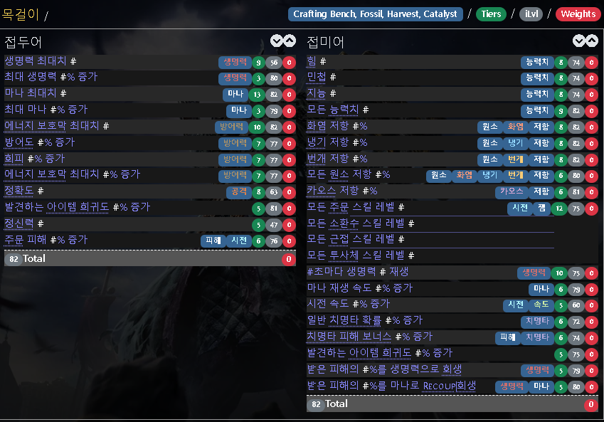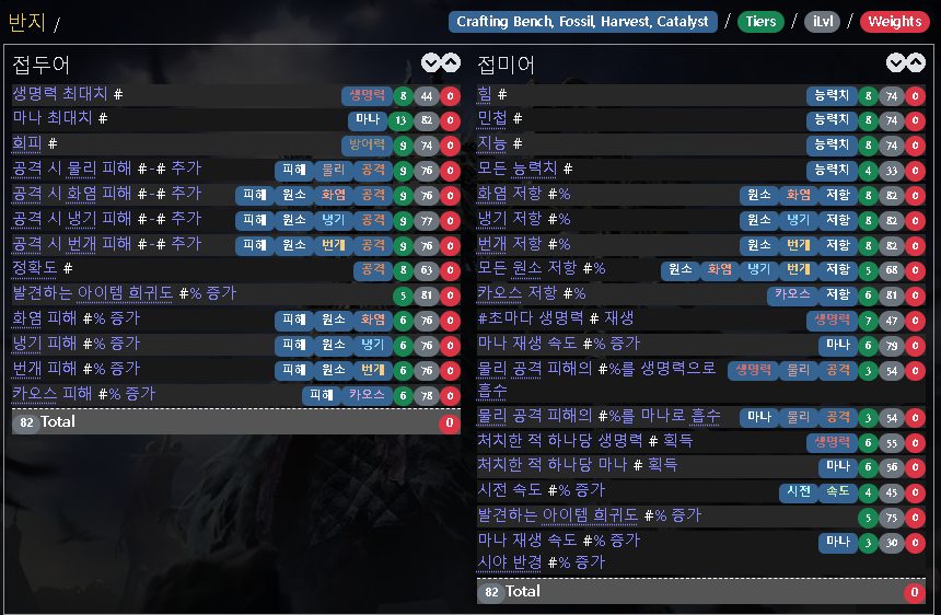 | 목걸이 속성 | 반지 속성 |